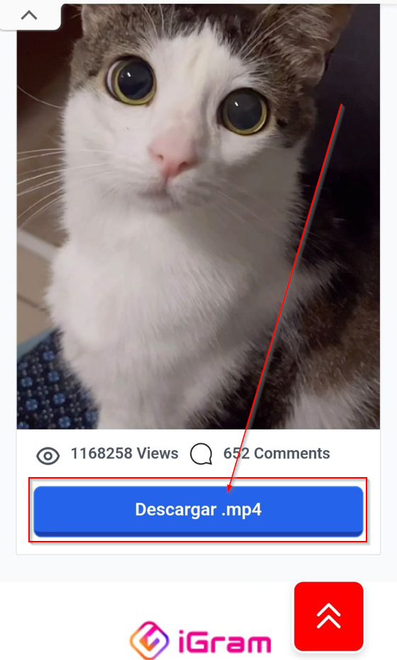 - Finalment, quan es torni a carregar la pàgina, baixeu fins el final i feu clic al botó Descarregar .mp4: