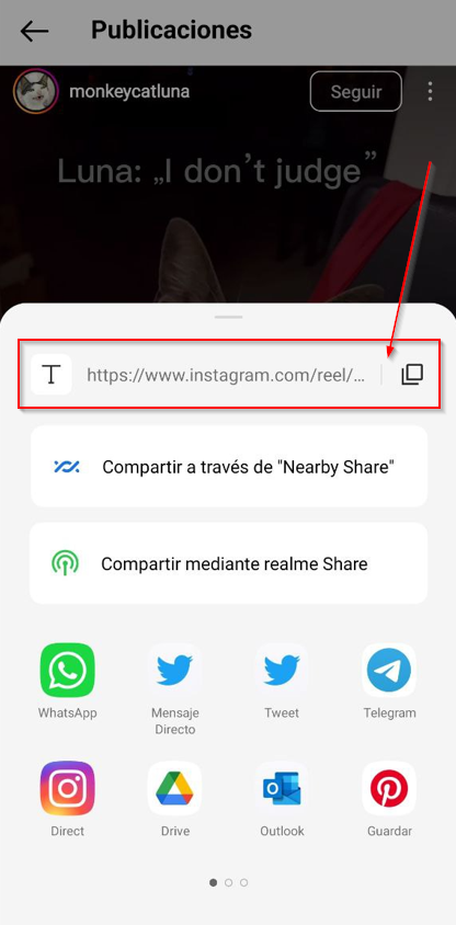 - Seguidament, accedim al vídeo que volem descarregar i fem clic a la icona amb tres puntets situada a la cantonada superior dreta de la pàgina i seleccionar Copia l'enllaç: