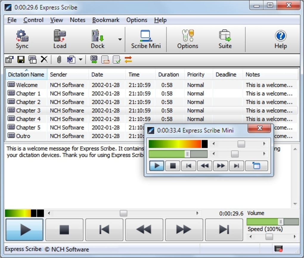 Express Scribe és un programa de transcripció i subtitulat que ens permet transcriure àudio i vídeo. Ens permet configurar dreceres de teclat o pedals físics per poder augmentar la productivitat a l'hora de transcriure. Aquest programa ens permet reproduir l'arxiu multimèdia a diferents velocitats per tal de transcriure amb més facilitat. Fins i tot, aquest programa ens permet escriure les transcripcions amb qualsevol processador de textos que tinguem instal·lat a l'ordinador i controlar l'àudio i el vídeo mitjançant dreceres de teclat, per fer-nos més còmoda la feina.