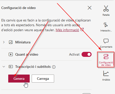 Activar la transcripció: Un cop feu clic a "Genera", Stream començarà a processar l'àudio del vídeo per generar la transcripció automàtica.