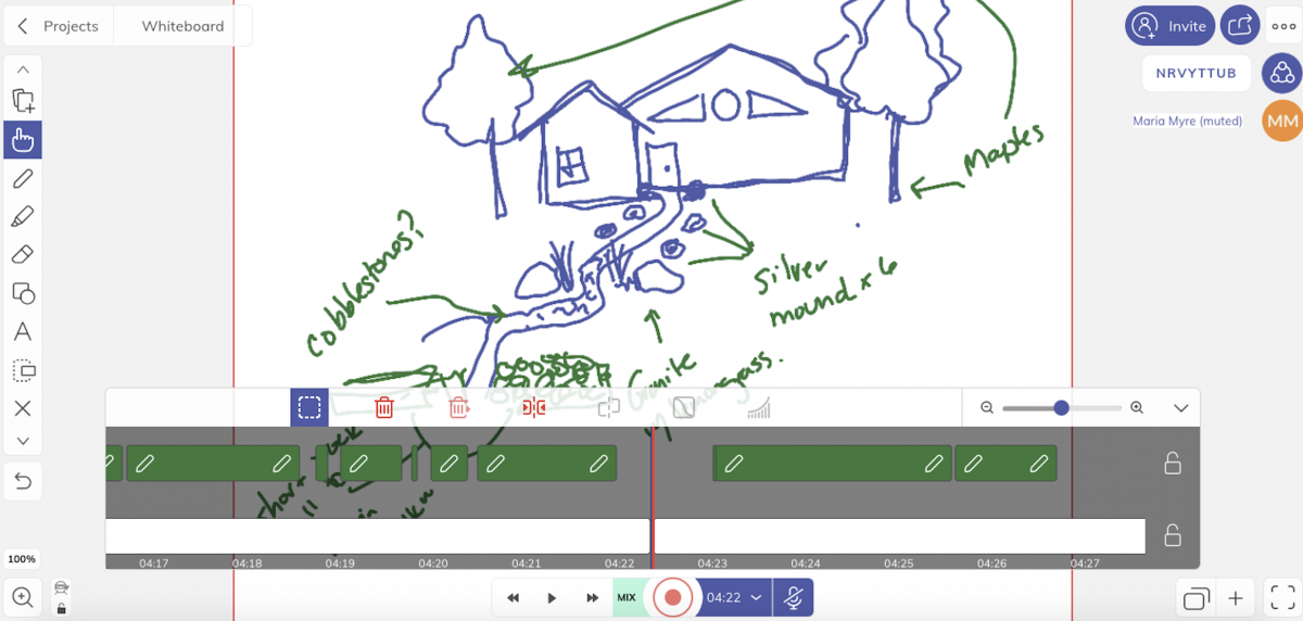 Això és degut al fet que la plataforma se centra sobretot en les funcions d’enregistrament de vídeo; l’aplicació ofereix la possibilitat de gravar la pissarra i la veu mentre es dibuixa, i després editar tot el conjunt.
