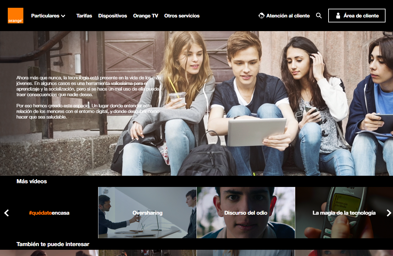 Aquest portal de l'empresa de telefonia Orange parla sobre moltes temàtiques relacionades amb el món d'internet a partir de vídeos concrets. És una molt bona eina, ja que no només tracta els temes dels quals es parla més sobre seguretat a internet sinó que s'aventura també a parlar sobre webs d'apostes en línia, discursos d'odi a la web i la sobreexposició a la qual ens sotmetem a internet. Cada temàtica incorpora dos vídeos, una teatralització sobre el concepte i un webinar amb un expert sobre el tema, i un article que parla sobre aquest.