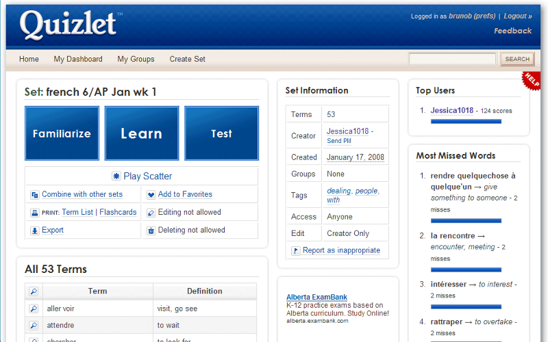 Quizlet és una eina per crear targetes amb continguts educatius (textos i imatges).