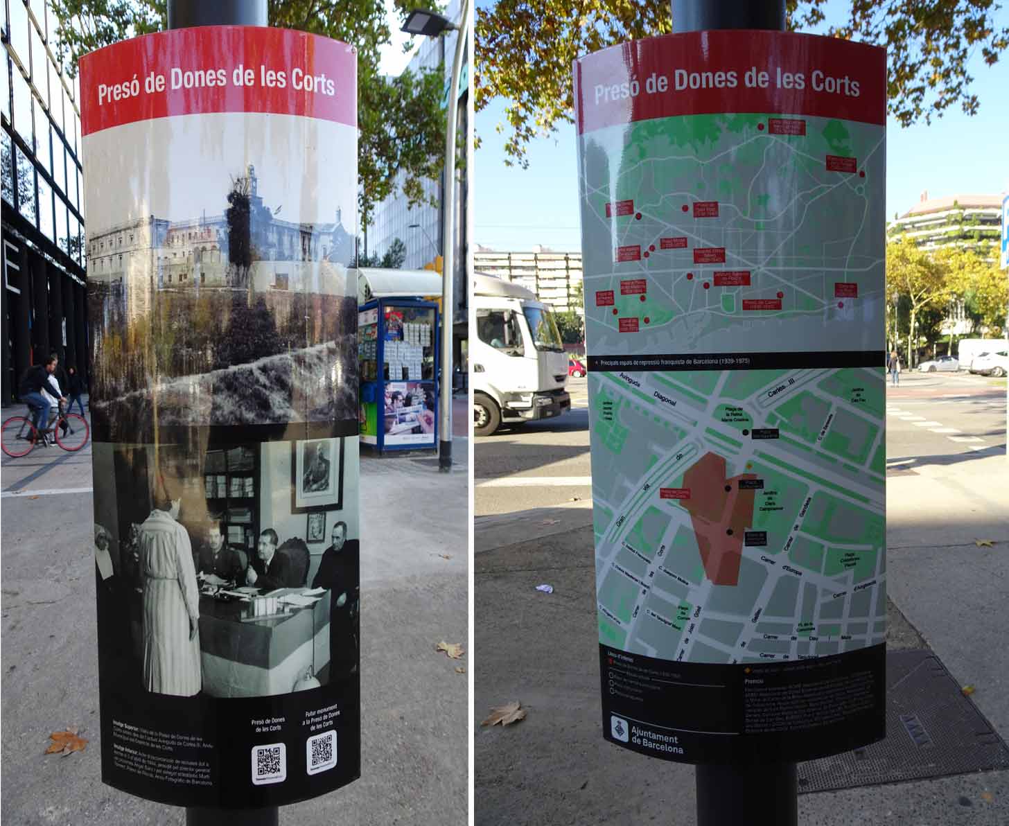Una modificación del sistema de señalización peatonal de Barcelona ha permitido desarrollar una obra de arte público con el objetivo de vincular determinados espacios de represión durante el franquismo: la antigua prisión de mujeres de Les Corts y el Camp de la Bota sítio de fusilamientos. La obra señala dos puntos separados por 8 km a lo largo de la Diagonal de Barcelona.
