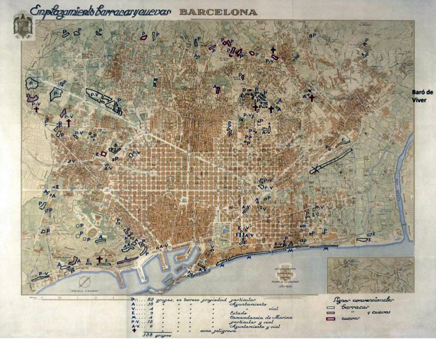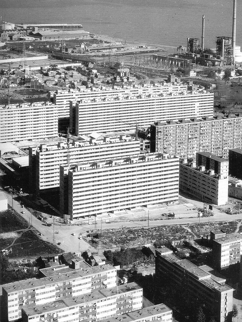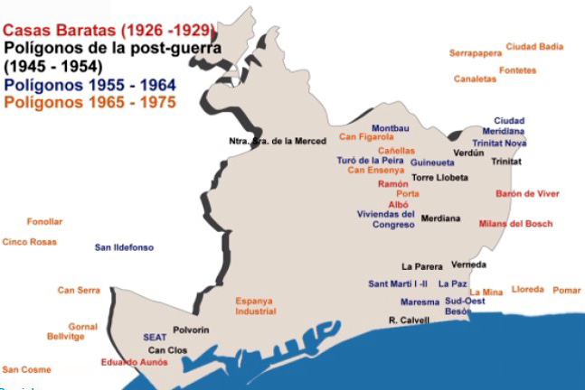 | Distribution of housing estates built in Barcelona between 1926 and 1975 . | 1960's. Due to various reasons, in the 1960s, Barcelona began a process of deindustrialization. plans for the former industrial area of Poblenou (Plan de la Ribera) and connecting the city with the metropolitan territory arise. a new management of the city also arises from the idea of directional centers |
