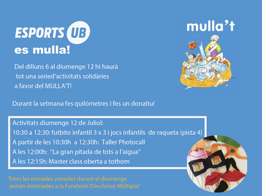 Tot preparat i a punt pel Mulla’t del proper diumenge que culmiarà la setmana d’activitats programades a Esports UB per aquesta causa. Animem a tots els abonats a col·laborar amb la Fundació per l’esclerosi múltiple nedant, comprant i fent els seus donatius.