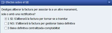 - Opció 1 SI: S’alliberarà la factura per tornar-se a tramitar