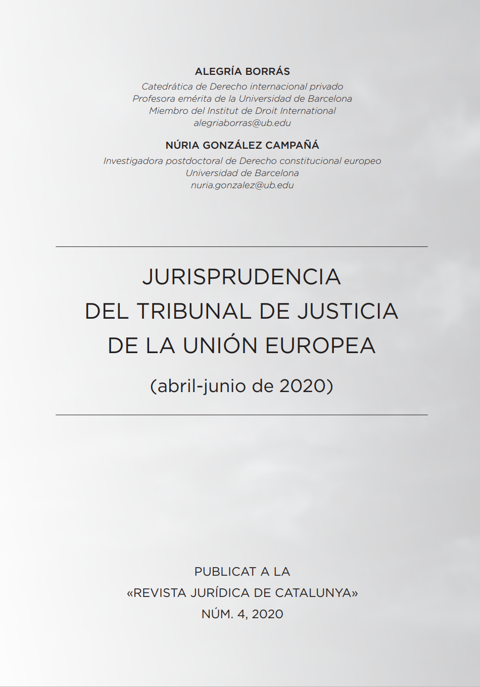 N. GONZÁLEZ CAMPAÑÁ, «Jurisprudencia del Tribunal de Justicia de la Unión Europea (abril-junio de 2020)», pp. 251-257. Consultar