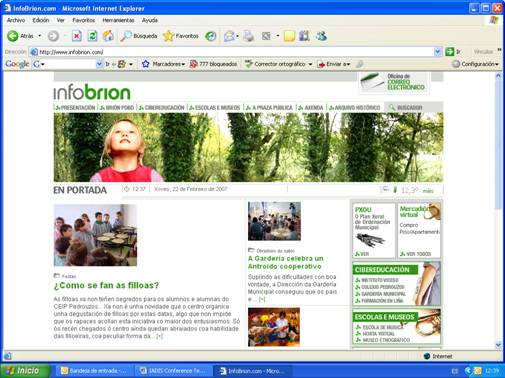 Infobrion es una reacción a las deficiencias de comunicación online que existen en general en los municipios españoles en general y gallegos en particular. Hemos llevado a cabo un trabajo de observación de las webs de diversos municipios rurales que nos ha permitido obtener una aproximación a sus características. Nuestra intención giraba en torno a la observación de posibles comunidades virtuales. La observación pormenorizada de las páginas web de estos ayuntamientos pone en evidencia, salvo excepciones, las carencias y falta de interés que las administraciones municipales tienen al respeto. Es frecuente la simplicidad en el tratamiento de la información; se concibe la web como herramienta de comunicación unidireccional, es el ayuntamiento el que ofrece la información que le interesa. La práctica de la democracia electrónica no existe o está orientada de forma muy simple hacia unos fines muy determinados. Los foros abiertos controlados por moderadores son excepcionales. Todo indica que es preciso concebir y desarrollar webs municipales como herramientas tecnológicas que favorezcan e impulsen el uso social de las nuevas tecnologías, faciliten la vida diaria a los ciudadanos y dinamicen el flujo de información entre actores sociales, políticos, económicos, culturales, etc. También son frecuentes los casos de ayuntamientos que entienden su página web como un medio de difusión destinado a vender “turísticamente su territorio”, y se centran en dar información de datos, fotos, contar la historia, describir la geografía, etc., con una clara vocación enciclopédica. Por otra parte, lo que realmente es destacable es el esfuerzo que, en general, se tiende a hacer con la administración electrónica; la mayoría de las páginas web municipales permiten obtener documentos y formularios para iniciar las gestiones; sin embargo, lo común es que los ciudadanos tengan que desplazarse de igual manera a las oficinas municipales.