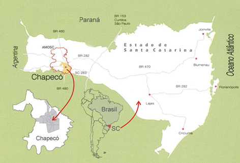 O Brasil tornou-se, nesses últimos 30 anos, o maior exportador de carnes de aves do mundo e o terceiro na produção desse produto, só perdendo para Estados Unidos (16.162 mil toneladas) e China (10.350 mil toneladas). O país produz 9.335 mil toneladas de frango por ano e exporta 2.713 mil toneladas principalmente para a Ásia, Oriente Médio e Europa. Essa liderança é conseqüência da atividade de um grande complexo de agroindústrias instaladas em uma região no extremo oeste do Estado de Santa Catarina, situado no sul do Brasil. Neste pólo agroindustrial destaca-se a cidade de Chapecó, onde se localiza uma das maiores produtoras e exportadoras mundiais de carne de frango: a empresa Sadia S/A, que exporta para mais de 100 países no mundo. O sucesso da produção agroindustrial na região e, principalmente, da indústria Sadia, em Chapecó, se deu graças à organização produtiva que a empresa formou desde o início do seu funcionamento, na década de 70, envolvendo pequenos produtores rurais e a indústria em um sistema de parceria. É o chamado sistema de integração, que hoje, assim como em todo o período agroindustrial na região, é o grande responsável pelo êxito da produção agroindustrial. Nesse sistema ocorre um esquema normativo de parceria entre o pequeno produtor rural e a empresa, na qual o primeiro produz para a indústria e esta se compromete com o fornecimento de assistência técnica e de insumos para a produção (animais novos, vacinas, ração e outros). Ao agricultor cabe a responsabilidade de acompanhar a evolução tecnológica da empresa para alcançar o padrão de aceite do produto pela indústria para exportação. Com isso, a indústria nunca precisou ter áreas de criação e de produção da matéria-prima, mas construiu, devido à magnitude de sua produção, um monopólio e o controle sobre os pequenos produtores familiares, onde, só permanece no sistema de integração quem se associa à empresa e consegue manter os níveis de exigência da produção ditados por essa. Os demais são removidos do sistema, já que não tem para quem vender seus produtos. Os que não conseguem acompanhar o nível de normas e de investimentos exigidos pela indústria são obrigados a abandonar essa atividade produtiva e, muitas vezes, migram para a área urbana para tentar a sobrevivência que no campo não foi possível. Esse processo de migração rural-urbana e o crescimento acelerado da população originaram muitos dos problemas urbanos de Chapecó.
