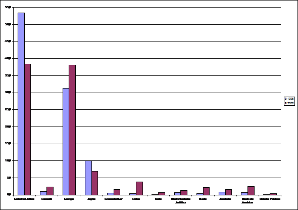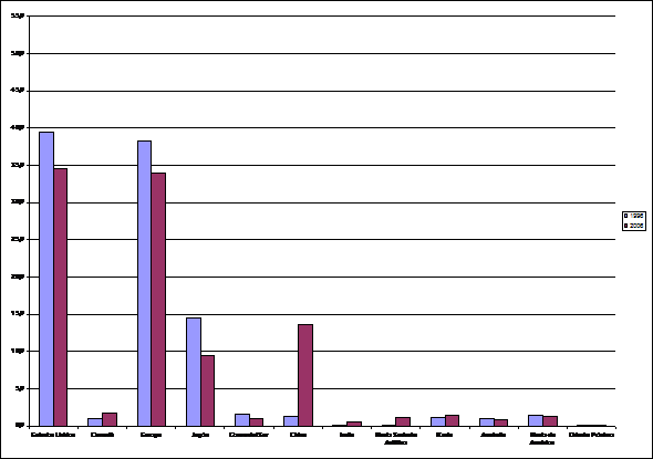 Cuadro 5. Distribución de las 500 grandes empresas mundiales por países en 1996 y 2006