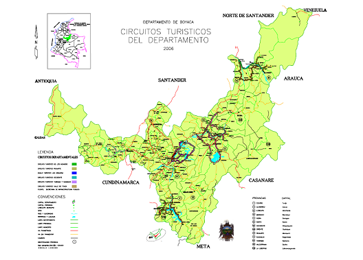 Tiene representadas las diferentes rutas turísticas, el nombre de los municipios, hospitales, restaurantes, terminales de transporte, hoteles, iglesia y atractivos naturales. |