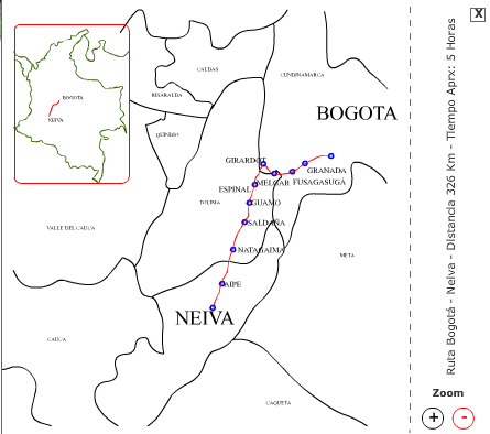 Solo muestra la vía para llegar a Neiva y los centros poblados por los que pasa esta misma. |