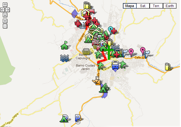 Tiene información de centros históricos, restaurantes, terminales, lugares de interés turístico, las vías, estaciones de gasolina y droguerías. |