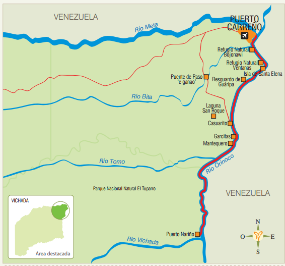 Fuente: Tomado de Gobernación de Vichada. 2012. <http://www.vichada.gov.co/documentos/Turismo/guiaTuristica.pdf>. |