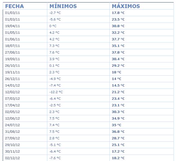 4a. Temperatura mínima y máxima para la estación automática localidad de