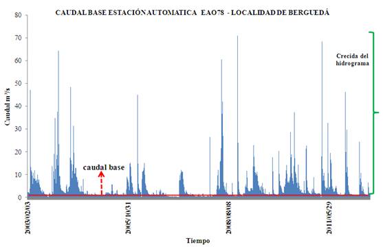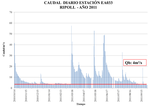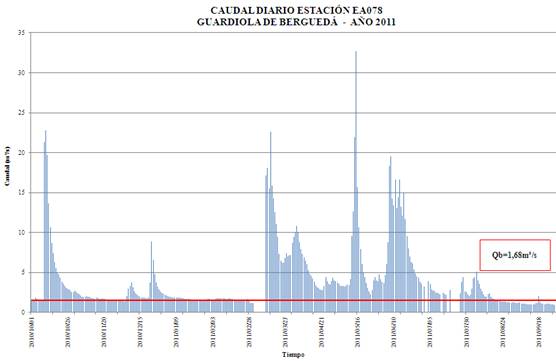 9. Caudal base estación hidrológica EA078, comarca de Bergueda, año 2011.