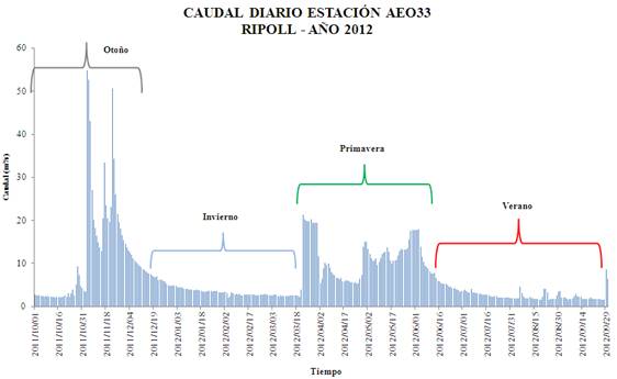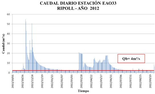 7B. Caudal base estación hidrológica EA033 año 2012.