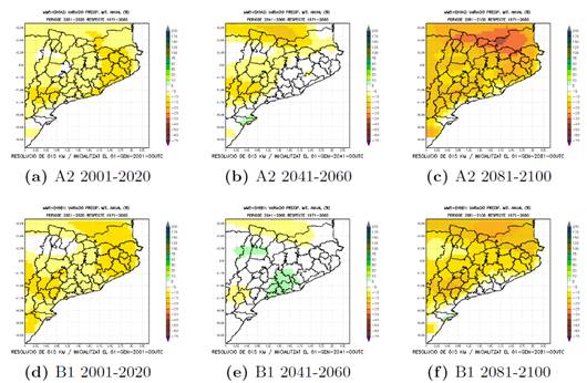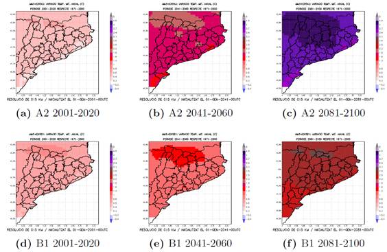 conjunto de Cataluña según los escenarios de emisiones A2 y B1