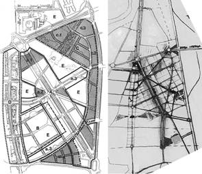 Figura 4. Plan de Alineaciones (1950) frente a Plan Mesones (1970) |