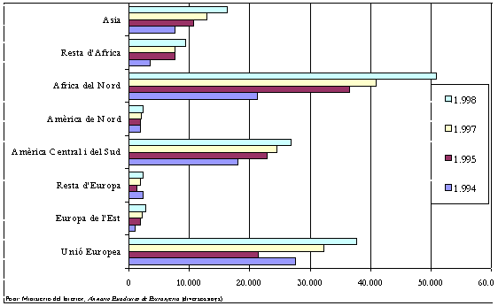 ( % sobre el total d'immigrants —UE exclosa— a 31/12/1998)