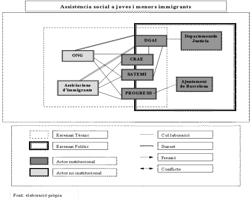 És en aquest sentit que sembla útil analitzar el paper que juguen els diferents actors presents en la formulació de les polítiques públiques en matèria d'immigració. Sovint l'actuació d'institucions socials intermediàries complementa i inventiva el rol dels gestors públics alhora d'elaborar i establir estratègies sectorials que abordin les necessitats que van sorgint en diferents àmbits.