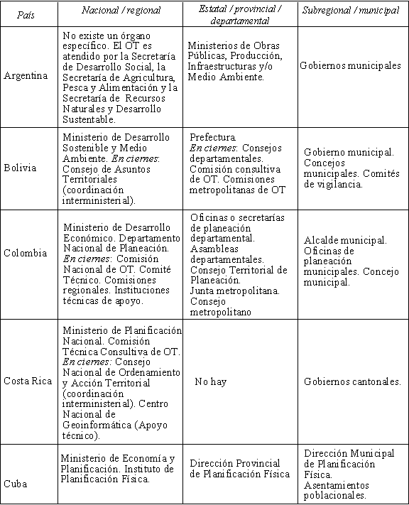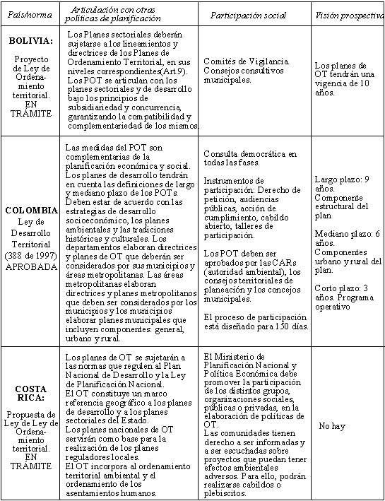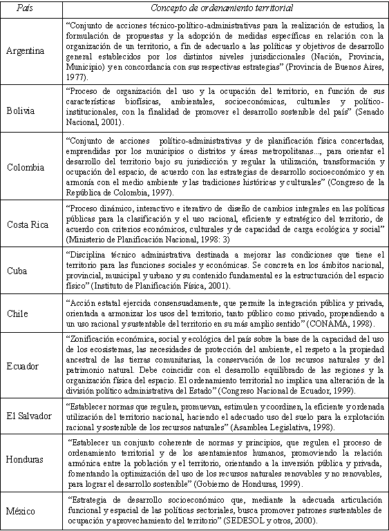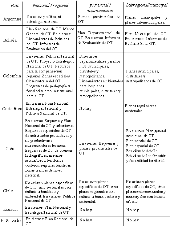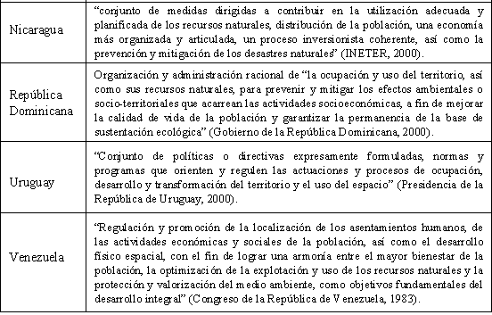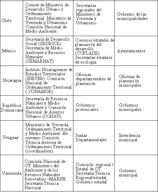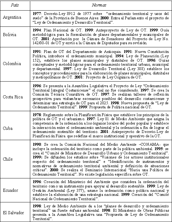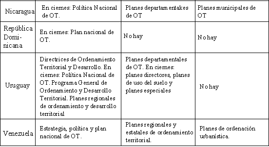 [5] Con excepción de Venezuela que desde 1983 ya tenía una "Ley Orgánica para la Ordenación del Territorio".