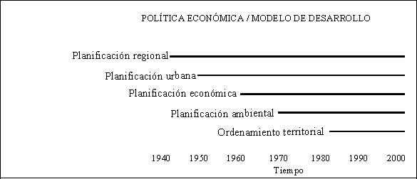 Antes del surgimiento de las políticas de ordenación del territorio, los países latinoamericanos experimentaron diversas opciones de planificación tanto sectoriales como plurisectoriales, mediante las cuales se incidía sobre el territorio. Se destacan, en este sentido, la planificación regional, el urbanismo, la planificación económica y la ambiental, las cuales evolucionaron paulatinamente hacia la ordenación del territorio (figura 1).