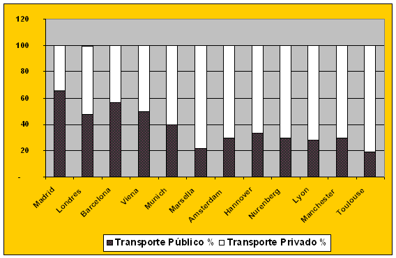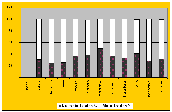 modal de los desplazamientos motorizados en diversas ciudades europeas