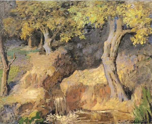El simbolismo del primer tercio del siglo XX, cuenta también con pintores vinculados a estas serranías, como Eugenio Hermoso, de Fregenal de la Sierra, y Sebastián García Vázquez, de la Puebla de Guzmán, que vinculan su pintura a la nostálgica añoranza spengleriana de detalles y temas identitarios, pintados desde una clara modernidad. Quizás habría que enmarcar aquí también a José Mª Labrador, pintor asentado en Nerva, desde 1916 e identificado con la lucha social minera y exponente de la generación del 27, que -en su Paisaje serrano de alcornoques y encinares junto a un arroyo entre roquedales- se decanta por una plástica colorista y densa de herencia “fauvista”, desarrollada a partir de su relación con Bacarisas en Sevilla: