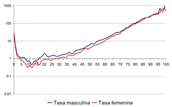 Los distintos hábitos de cada sexo, pero sobre todo la disímil capacidad biológica para enfrentarse a ciertas enfermedades, llevan a que las series de esperanza de vida de hombres y mujeres se comporten de manera diferente. Por ello, aplicar el mismo modelo sobre ambas conduce al error.