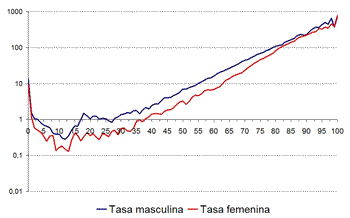 [2] Las series de esperanza de vida que se han utilizado son las correspondientes a: Alemania Occidental (1956-2002), Alemania Oriental (1956-2002), Australia (1921-2003), Austria (1947-2002), Bélgica (1931-2002), Bulgaria (1947-2003), Canadá (1921-2002), República Checa (1950-2003), Dinamarca (1835-2004), Eslovaquia (1980-2003), España (1908-2002), Estados Unidos (1959-2002), Finlandia (1878-2002), Francia (1899-2002), Holanda (1850-2003), Hungría (1950-2001), Inglaterra y Gales (1841-2003), Italia (1872-2001), Japón (1950-2002), Letonia (1959-2003), Lituania (1959-2003), Noruega (1846-2002), Nueva Zelanda (1876-2003), Rusia (1959-2001), Suecia (1751-2003) y Suiza (1876-2003).