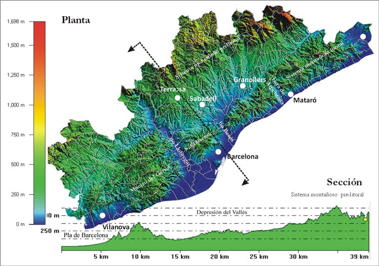 El territorio metropolitano es tan complejo como la historia a través de la cual se ha conformado. La progresiva inclusión de ciudades con un pasado tan rico como el del centro metropolitano, y la interrupción orográfica impuesta por la Serranía Litoral, ha originado un sistema con rasgos de policentrismo. Burns et al. (Op. cit.) han encontrado que se trata de un área funcional consolidada, y que hacía su interior existen áreas primarias cuyas cabeceras son, en orden de importancia: Barcelona, Sabadell, Terrassa, Mataró, Granolllers y Vilanova, tres en la costa, y tres en los valles prelitorales. Como ser verá más adelante esta estructura policéntrica tiene profundas implicaciones en la distribución y el cambio de la localización de las nuevas actividades basadas en la información.