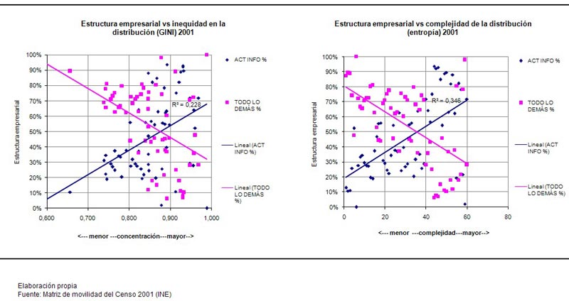 Figura 8 Relación entre la estructura empresarial y los indicadores espaciales de los sectores económicos 2001. |