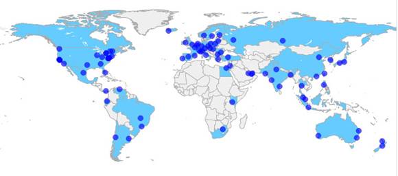 Figura 1. Servidores Raízes da ICANN no Mundo.