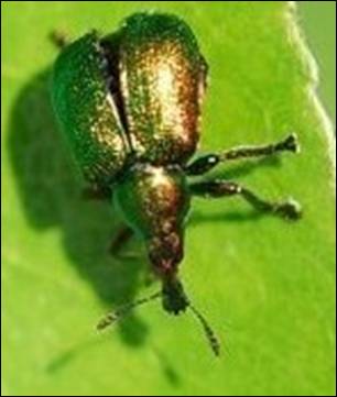 El cigarrero (Byctiscus betulae) es un coleóptero que durante el siglo XIX era conocido entre los articulistas en agronomía como Rhinchytes betulae o beluleti. Coleóptero de 5 a 8 mm, de color azul verdoso metálico, inicia su ciclo biológico en una cámara ninfal oculta bajo tierra o en la corteza de las cepas (figura 2). Al igual que la piral sale de su escondrijo en primavera coincidiendo con la floración y se alimenta de las yemas y hojas tiernas, algunas de las cuales son enrolladas por las hembras dándoles forma de cigarro donde ponen sus huevos. Con el tiempo la hoja enrollada se seca y cae al suelo, adquiriendo una tonalidad marrón muy similar al tabaco. De ahí su nombre de cigarrero. Se sabe que entre 1830 y 1840 causó muchos daños, por lo que las Sociedades Económicas de León, Mallorca y Barcelona se ocuparon del modo de combatirlo. Por encargo de esta última, y ante la fuerza que el insecto había cobrado en las viñas del Vallés, Mariano de la Paz Graells redactó una Memoria en 1834 en la que aconsejaba que se arrancaran las hojas cuando se enrollan y que las quemaran (Antón, 1868, p. 725). En Mallorca, donde se le denomina cuca, arraigó con tal fuerza que desde 1833 y por un período de dos décadas se convirtió en una auténtica pesadilla (Barceló, 1959). Medio siglo más tarde, el cigarrero estaba actuando con fuerza en varios puntos del Valle del Ebro. La Sociedad Económica de Lérida informaba en octubre de 1887 que el Rhinchites betuleti había causado graves daños en las viñas de los partidos de Tremp y de Lleida durante la primavera del año anterior (CAP, III, p. 231). Por las mismas fechas la Diputación de Álava también se quejaba de los daños causados por el cigarrero, mientras que el Ayuntamiento de Haro y el Consejo de Agricultura de Logroño se hacían eco de la plaga y decían que para destruirlo se empleaban cuadrillas de mujeres y de niños (CAP, II, p. 415).