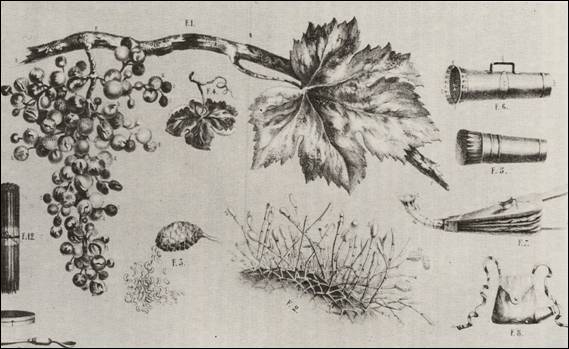 sobre racimos y pámpanas de la vid y aparato para azufrar las viñas. |