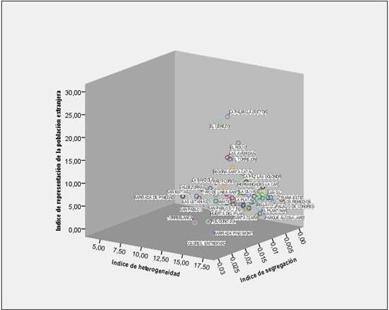 En segundo lugar, esta sección se centra en el análisis de las pautas de segregación de la población inmigrante en la ciudad. En definitiva, una vez conocida la presencia y heterogeneidad del grupo, el análisis se destina a conocer su distribución en el territorio, a partir de los indicadores de segregación que a continuación se describen.