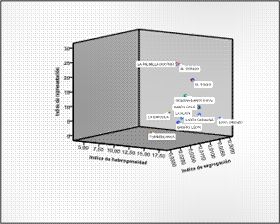 En este sentido, un grupo sumamente segregado sería por definición aquel cuya distribución residencial no es igual que la del resto (o la del grupo “mayoritario”); que no vive expuesto residencialmente a los demás grupos; que está altamente concentrado en poco espacio, cuyas áreas de residencia se agrupan por contigüidad, y muy centralizado (geográficamente). Sin embargo, cada dimensión de la segregación ha de presentarse en distinto grado y la combinación de las distintas dimensiones varía en función del tipo de segregación residencial de que se trate y del ámbito y nivel en el que se mida. Es decir, las distintas formas en que puede manifestarse la idea general de segregación como grupo que “vive separado” son muchas y complejas. Para este trabajo, tomando en consideración la información de la que se dispone procedente de las fuentes secundarias, consideramos dos dimensiones en relación con el estudio de la segregación. A saber: igualdad y exposición[12].