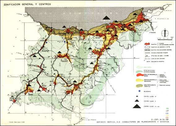 Plan Provincial de Ordenación Urbana de Guipúzcoa, 1966. Diputación Provincial de Gipúzcoa Equipo redactor Doxiadis Ibérica. Fuente: Colegio de Arquitectos Vasco Navarro, Delegación de Gipuzkoa.