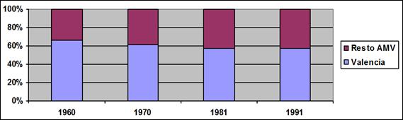 [27] Estas comparaciones son meramente aproximativas, pues el documento de 1964 al no especificar el ámbito exacto de la “Comarca” no permite comparaciones ajustadas con los 44 municipios actuales que se suelen considerar como el área metropolitana de Valencia.