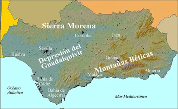 La región andaluza, con sus distintas unidades geomorfológicas y ambientales (figura 1), se encuentra en la frontera del árbol, por razones climáticas –marcada sequía estival y cierta torrencialidad en las precipitaciones-, geoedafológicas –muchos suelos erosionados, en pendiente y esqueléticos- y biogeográficas –escaso período vegetativo con obligado dominio de la estrategia perennifolia y presencia de áreas semidesérticas no arbóreas-[3].