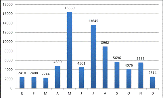 En 2012 se han publicado 135 artículos en Scripta Nova; 35 de ellos corresponden a los números ordinarios de la revista y los 100 restantes se han difundido a través de los dos números extraordinarios aparecidos durante el año (Cuadro 1).