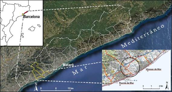 La comarca del Maresme se identifica con la estrecha franja que se extiende entre la línea de la costa de levante barcelonesa y la Cordillera Litoral catalana –que, en este sector, se dispone de SW a NE y queda delimitada por los cursos fluviales del Besòs y del Tordera. Desde el punto de vista litológico, el bloque elevado está conformado por materiales cristalinos, cuyo desgaste desde el plioceno ha permitido una suave sucesión de formas desde las laderas de la vertiente marítima hasta las llanuras aluviales y coluviales. En estas se han ido acumulando depósitos arcillosos procedentes de la transformación del batolito granítico, cuya descomposición –localmente conocida como sauló– es característica en toda la comarca[38]. La red fluvial del Maresme está formada por un conjunto de numerosos cursos modestos (cortos, pero que salvan un desnivel considerable en pocos kilómetros), que discurren paralelos, y que la mayor parte del año presentan un cauce seco: son las rieres o rials. La climatología local está condicionada por la disposición del relieve, que favorece la condensación del aire húmedo procedente del mar; un hecho que compensa notablemente la habitual irregularidad pluviométrica de la cuenca mediterránea[39].