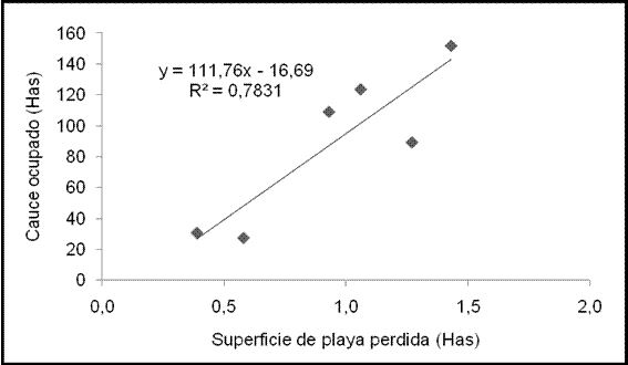superficie de cauce ocupado y la de playa erosionada. |