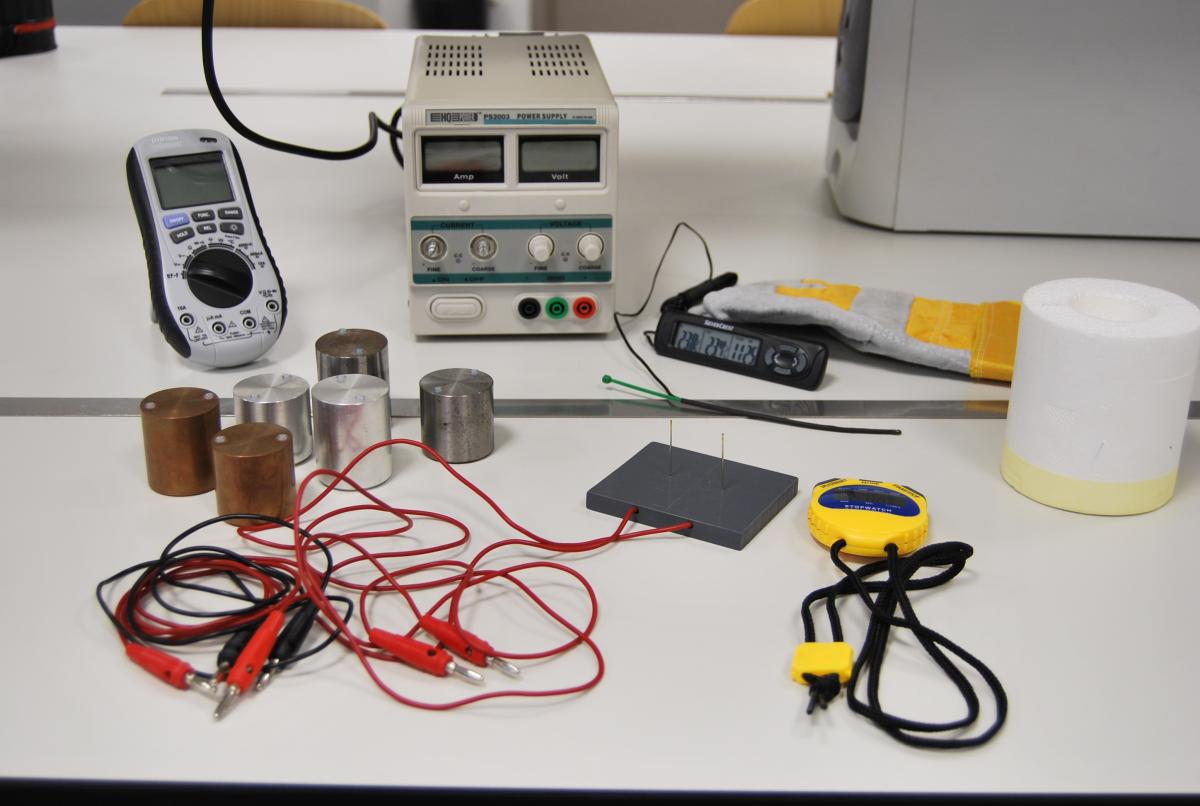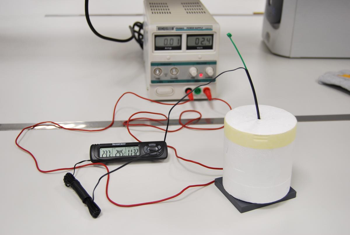 Es mesurarà la capacitat calorífica d'un bloc metàl·lic. Per fer-ho, aplicarem una potència elèctrica coneguda a una resistència que té un bon contacte tèrmic amb el bloc.