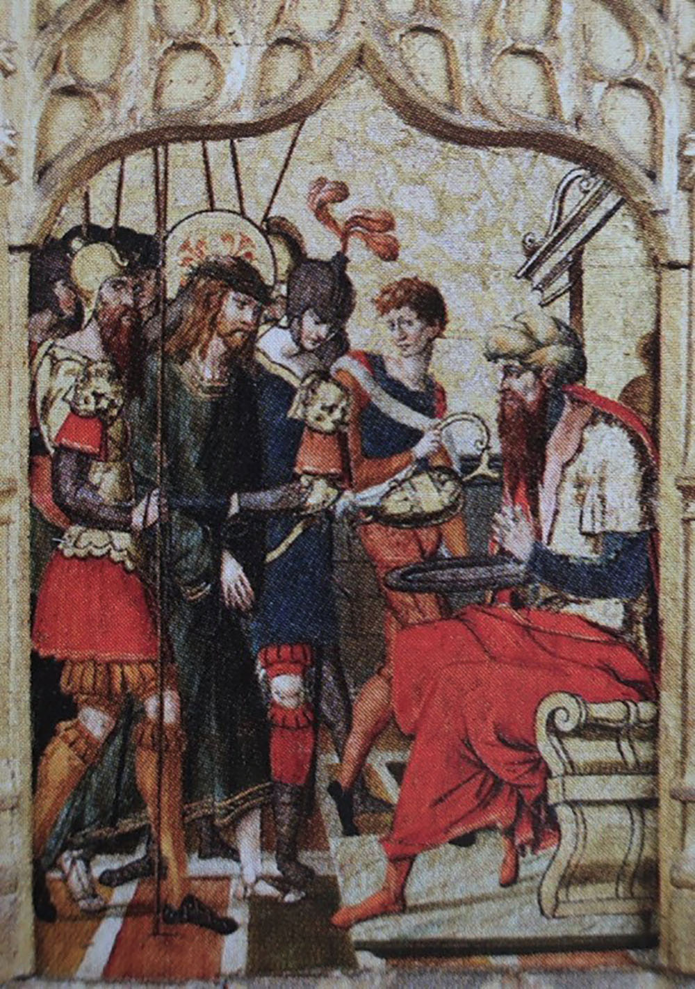 La imatge del Crist processat expressà tota la moral judiciària al llarg de segles, la qual es fonamentava en la fórmula evangèlica segons la qual la humanitat havia comès el seu primer gran error en el procés de Crist, i l’escena els recordaria la seva pròpia fragilitat i l’amenaça d’un judici d’una altra natura, tal com recordava la cita de l’Evangeli de sant Mateu (jacob 1994: 56). De fet, Crist va haver de comparèixer en diverses ocasions, atès que en el judici davant d’Anàs, el sacerdot l’envià al seu gendre Caifàs, el summe sacerdot que l’acusà de blasfem, i fou el governador romà Ponç Pilat qui ratificà la condemna a mort emesa pel sanedrí, després que es negués a fer-ho Herodes Antipes, tetrarca de Galilea. Si en els textos evangèlics hi ha molt poca concordança sobre aquest esdeveniments (réau 1998, tom I, vol. 2: 462), en les obres d’art tampoc hi domina una representació homogènia dels fets ni una narració detallada de les diferents compareixences judicials de Crist en els cicles de la Passió. Són diverses les fórmules iconogràfiques elaborades pels artistes amb relació al procés de Crist.