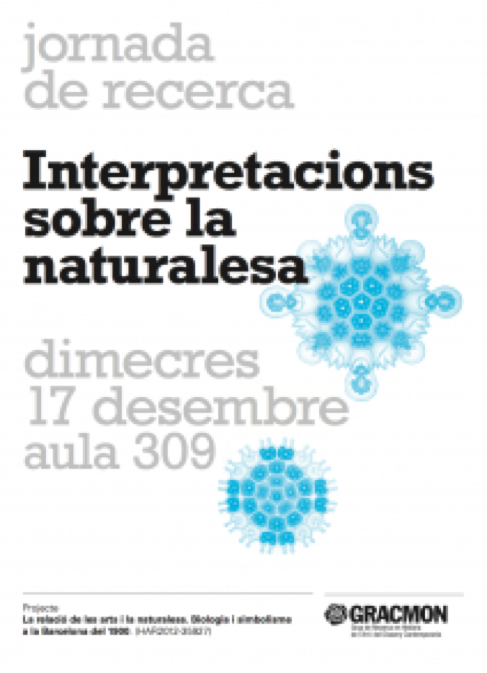 El projecte de Gracmon La relació de les arts i la naturalesa. Biologia i simbolisme a la Barcelona del 1900, dirigit per la Dra. Teresa-M. Sala, organitza la Jornada de recerca Interpretacions sobre la naturalesa. Se celebrarà el proper dimecres 17 de desembre a l’aula 309 de la Facultat de Geografia i Història (c. Montalegre 6, Barcelona).