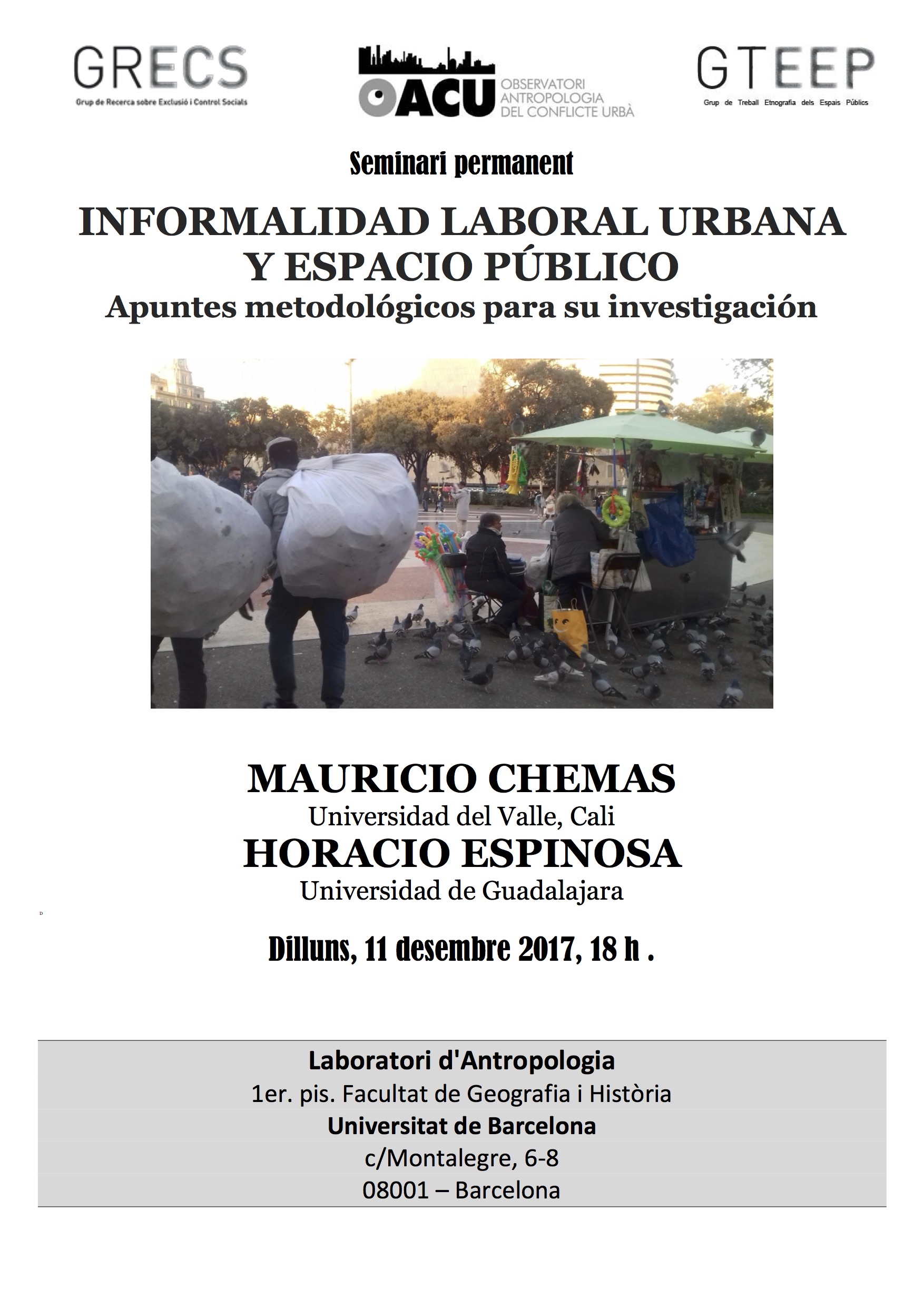 Informalidad laboral urbana y espacio públicos. Apuntes metodológicos para su investigación. A cargo de Mauricio Chemás (Universidad del Valle) y Horacio Espinosa (Universidad de Guadalajara)