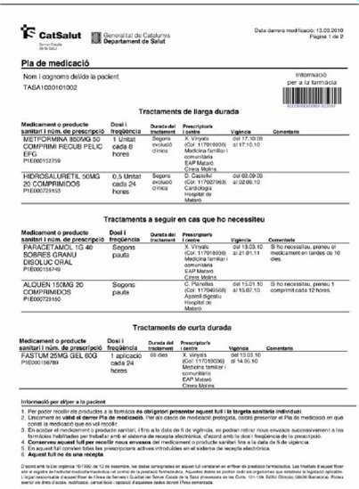 Para la receta electrónica, el RD 1718/2010 establece la necesidad de acompañar la prescripción con una Hoja de Medicación Activa que se entrega al paciente